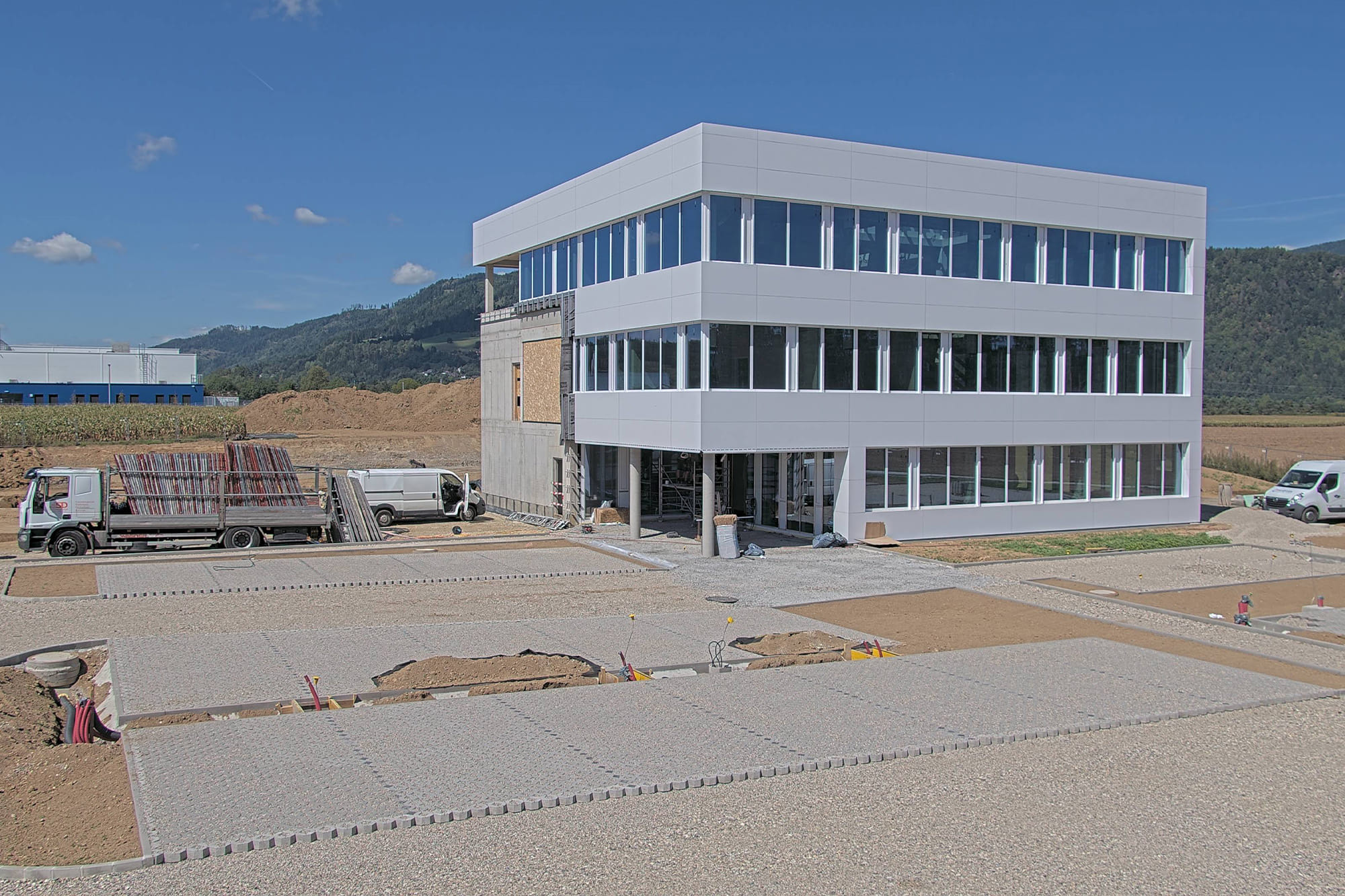 Ein Schwerpunkt der Analyse liegt auf dem Neubauprojekt in Völkermarkt. Dort entsteht im Industriepark Süd II ein moderner Firmencampus mit Bürogebäude und Fertigungshalle, dessen Fertigstellung für das erste Quartal 2026 geplant ist.